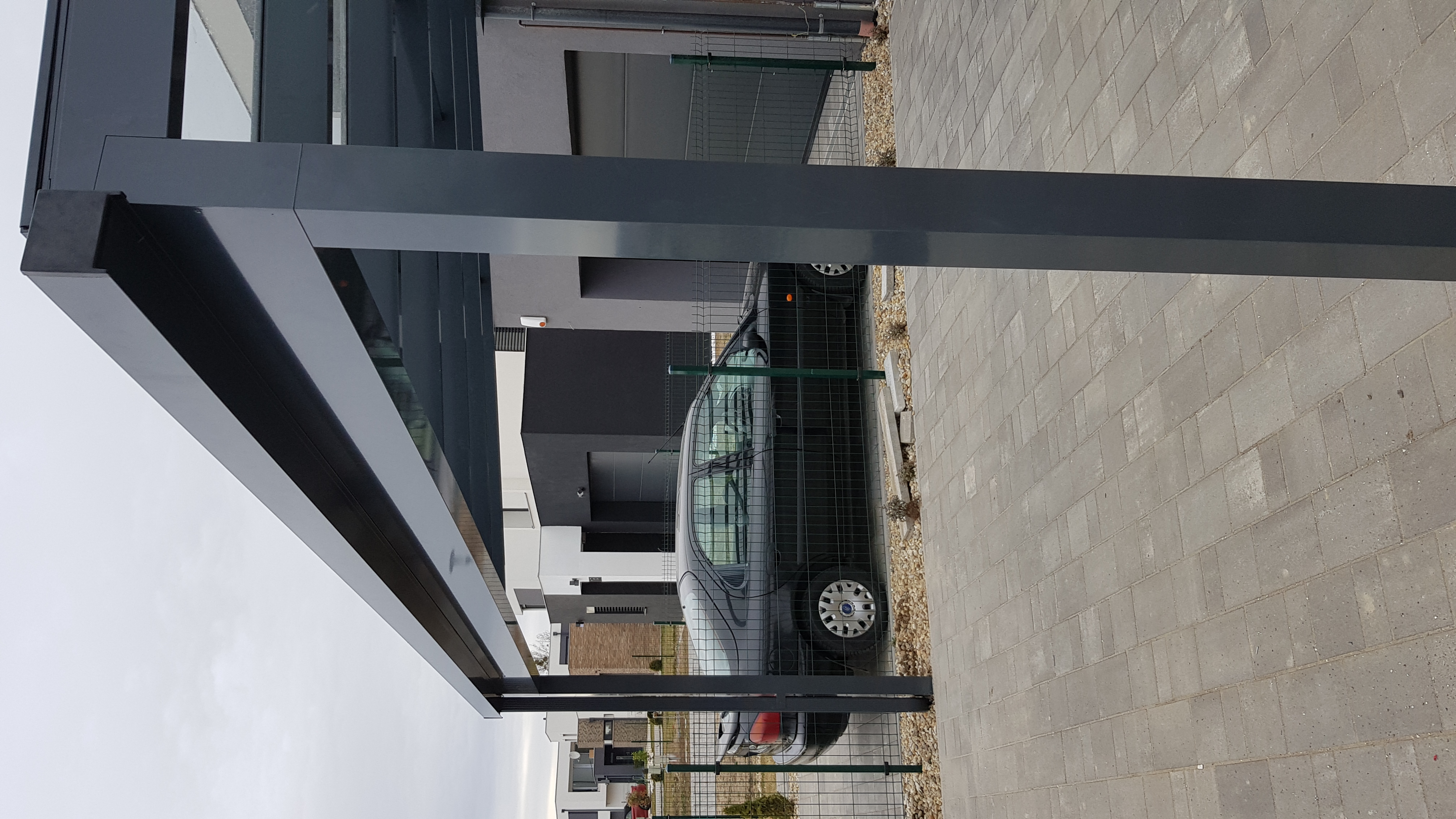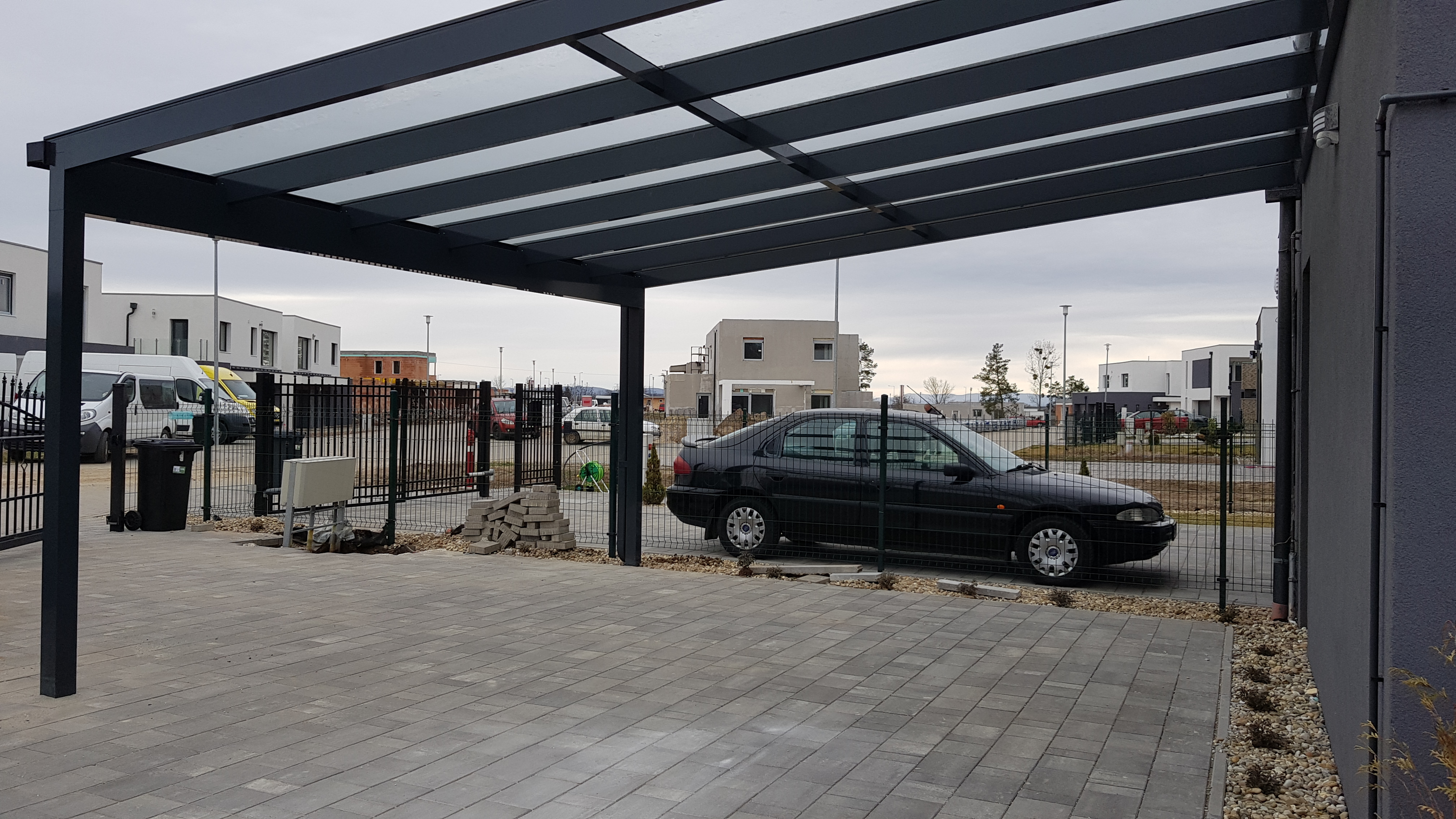 Az árnyékolóval ellátott autóbeálló letisztult megjelenése illeszkedik bármilyen homlokzathoz, miközben hatékonyan védi az outót.